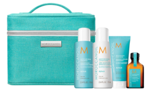 Η Moroccanoil δημιούργησε τα Meditarranean Escape travel sets για να έχεις παντού μαζί σου τα αγαπημένα σου προϊόντα περιποίησης μαλλιών! Το Meditarranean Escape Repair Set περιέχει σε ένα πολυτελές τσαντάκι τα καλύτερα προϊόντα θρέψης για ταλαιπωρημένα και ξηρά μαλλιά. Αυτά είναι το Moroccanoil Repair σαμπουάν και conditioner, όπως και την Restorative Hair Mask, πλούσια σε έλαιο αργκάν, βούτυρο καριτέ και πρωτεΐνες κερατίνης που βελτιώνουν την υφή, την ελαστικότητα και τη δυνατότητα διαχείρισης των μαλλιών σε μόλις 5- 7 λεπτά. Τέλος, δε θα μπορούσε να λείπει το εμβληματικό Moroccanoil Oil Treatment που περιποιείται τα μαλλιά, ελέγχει το φριζάρισμα και ενισχύει τη λάμψη.