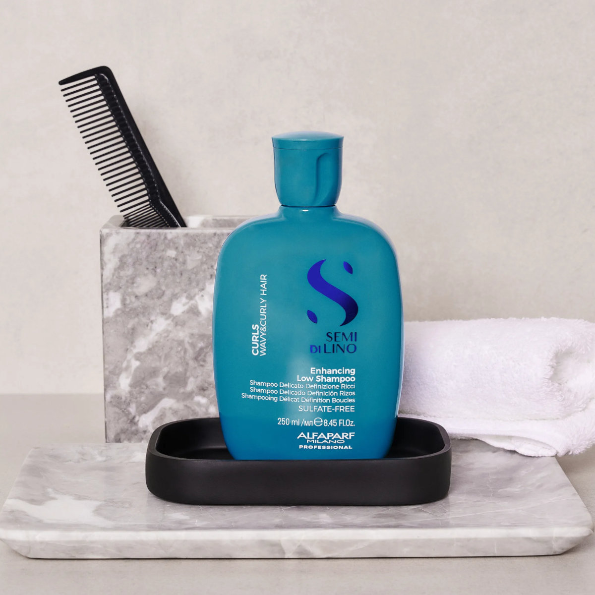 Το Alfaparf Milano Semi di Lino Curls Enhancing Low Shampoo 250ml καθαρίζει απαλά τα μαλλιά και χαρίζει σώμα και δομή στα σπαστά και σγουρά  μαλλιά.