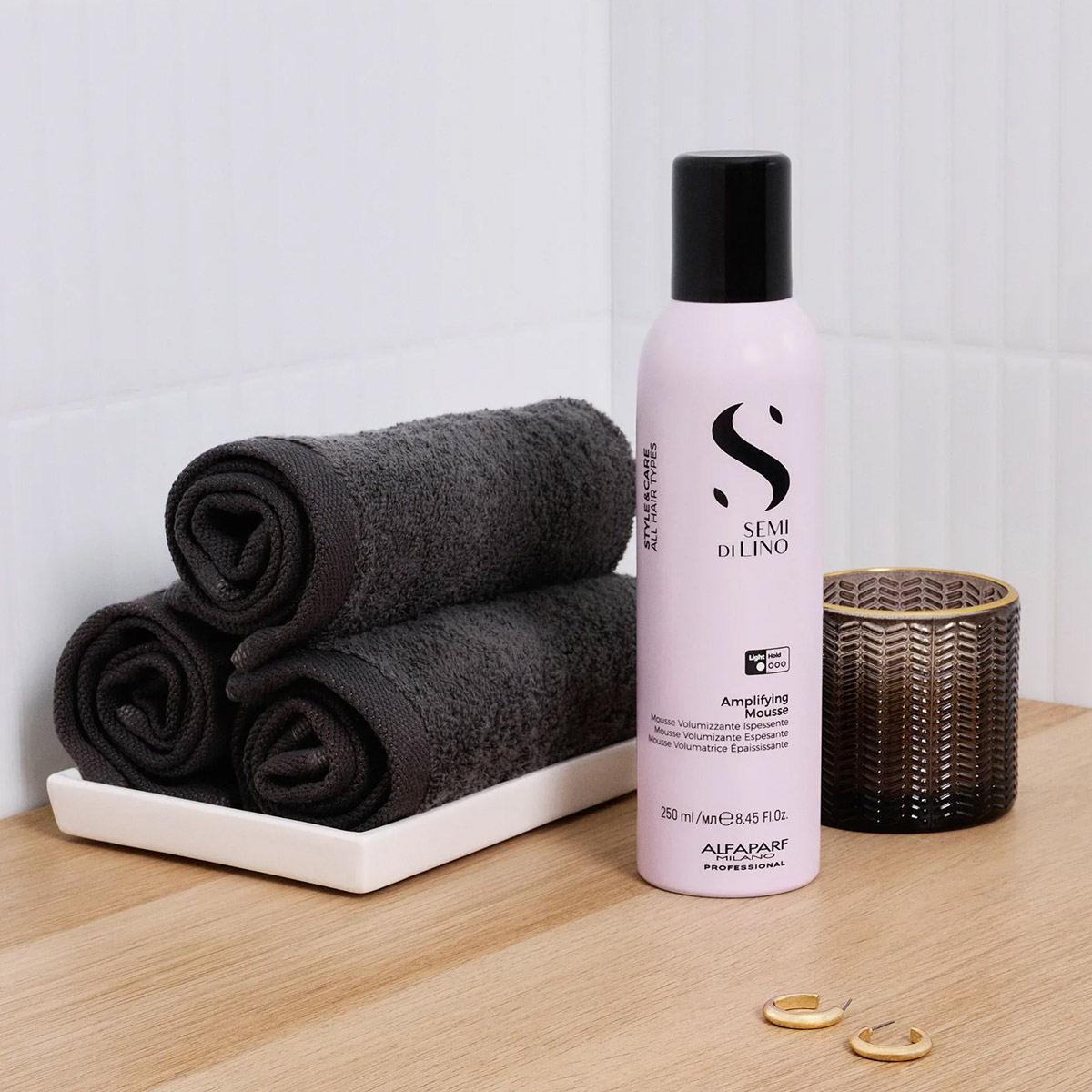 Το Semi di Lino Amplifying Mousse είναι ένας αφρός με bodyfying αποτέλεσμα που ενισχύει τον όγκο και το πάχος των ινών της τρίχας, αφήνοντας τα μαλλιά ανάλαφρα και λαμπερά.