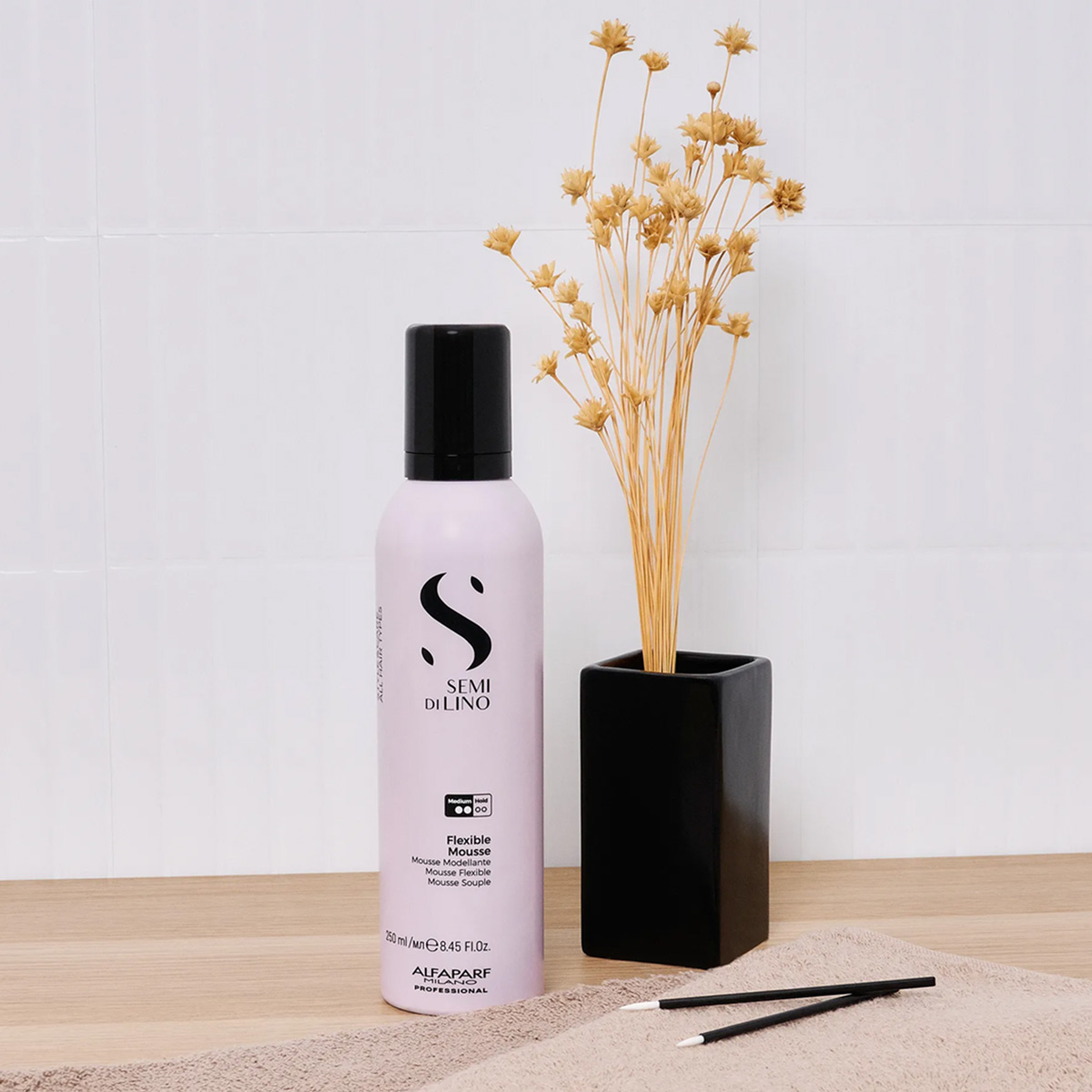 Η Alfaparf Milano Style&Care Flexible Mousse 250ml είναι ένας αφρός διαμόρφωσης που δημιουργεί ελαστική στήριξη, προσφέροντας ευελιξία στις μπούκλες. Τα μαλλιά φαίνονται καθορισμένα, μεταξένια και λαμπερά.