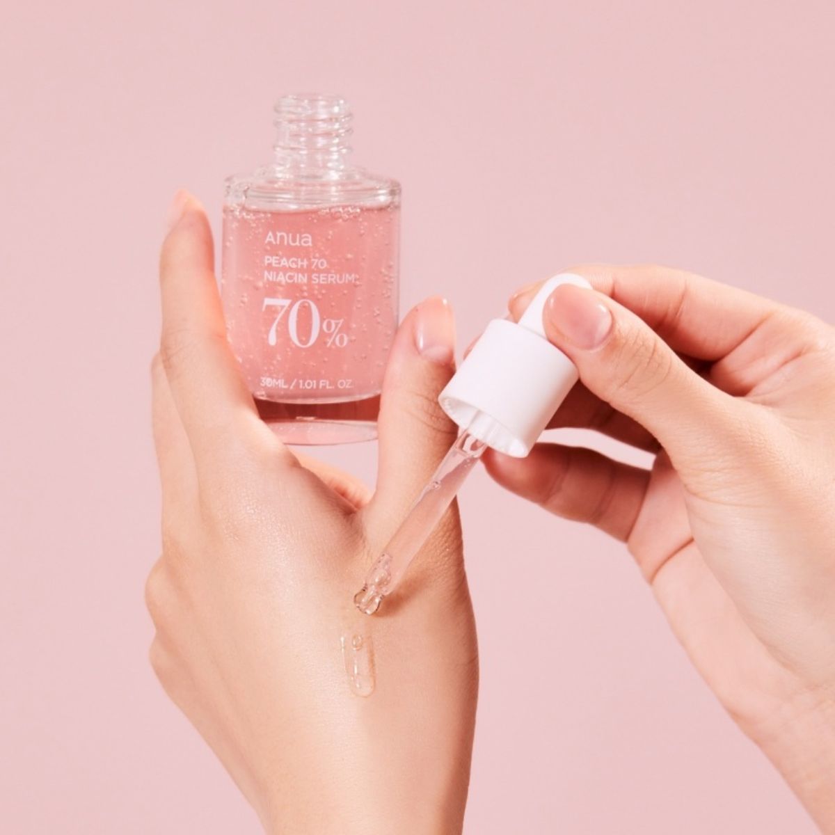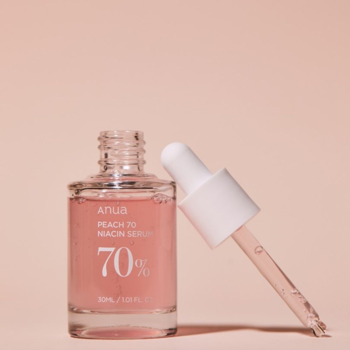 Anua Peach 70% Niacinamide Serum, τον ορό που χαρίζει το απόλυτο glass skin αποτέλεσμα! Με 70% εκχύλισμα ροδάκινου και 5% νιασιναμίδη, φωτίζει το θαμπό δέρμα, βελτιώνει τον τόνο και εξομαλύνει την υφή. Το serum απομακρύνει απαλά τα νεκρά κύτταρα, αφήνοντας την επιδερμίδα απαλή, λαμπερή και φρέσκια σαν να φόρεσες μάσκα από ροδάκινο και γιαούρτι. Ιδανικό για άμεση λάμψη και δέρμα που ακτινοβολεί κάθε μέρα!