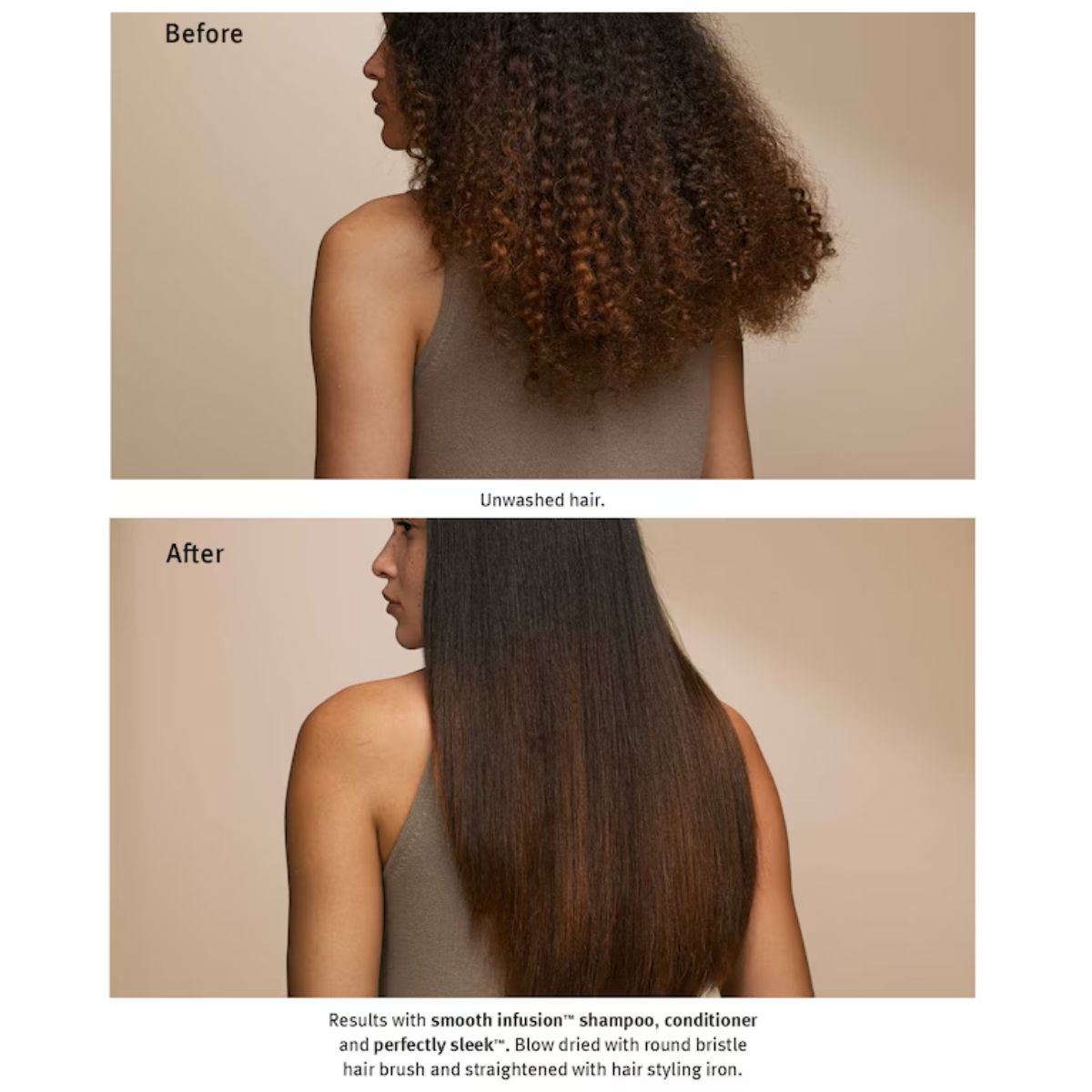 Η Smooth Infusion™ Perfectly Sleek της Aveda, ενεργοποιείται με τη θερμότητα και μεταμορφώνει την υφή των σπαστών και σγουρών μαλλιών σε πιο λεία και απαλή, χωρίς να αλλάζει ριζικά την όψη της μπούκλας.