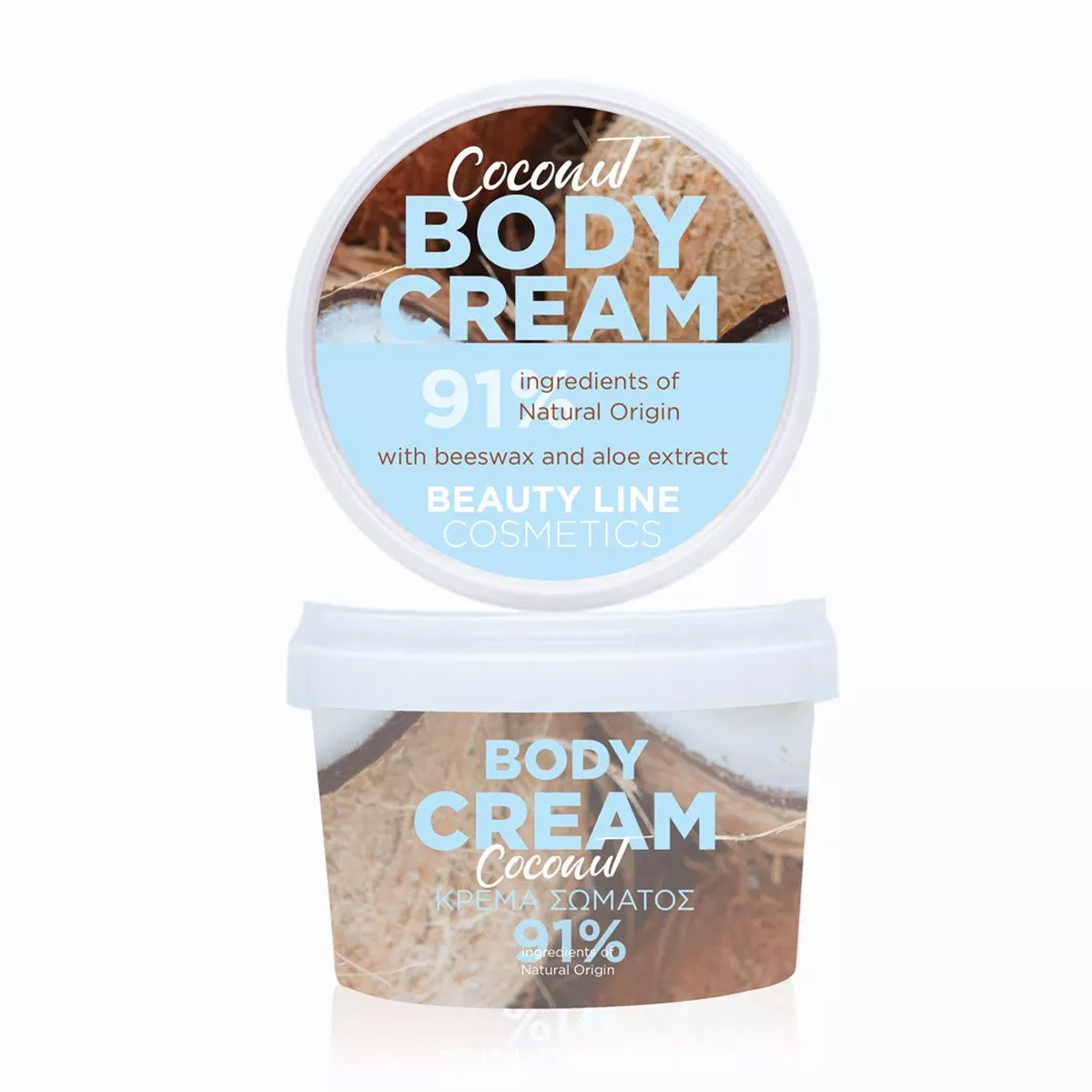 Ενυδατική κρέμα σώματος Beauty Line Cosmetics, με υπέροχο άρωμα Καρύδας.