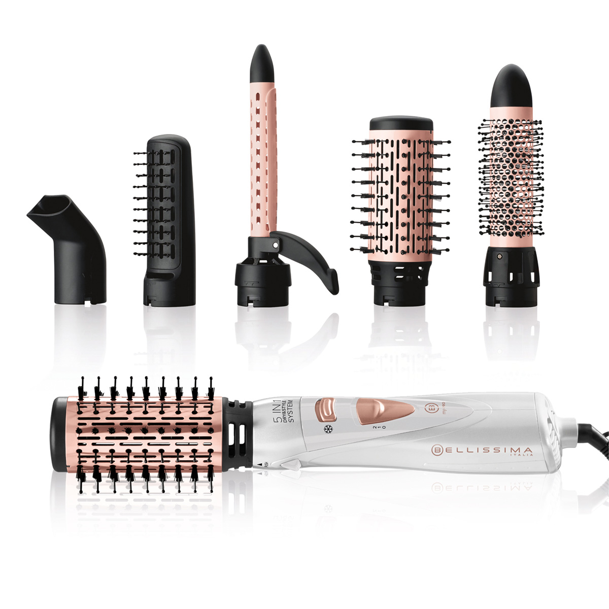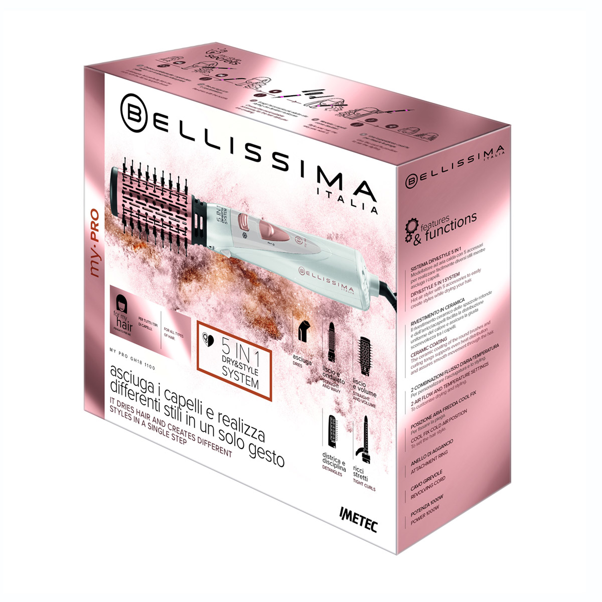 Η βούρτσα θερμού αέρα για φορμάρισμα Bellissima GH18 1000, 5 σε 1, Dry & Style System σας επιτρέπει να στεγνώνετε τα μαλλιά και να δημιουργείτε πολλά διαφορετικά στυλ.