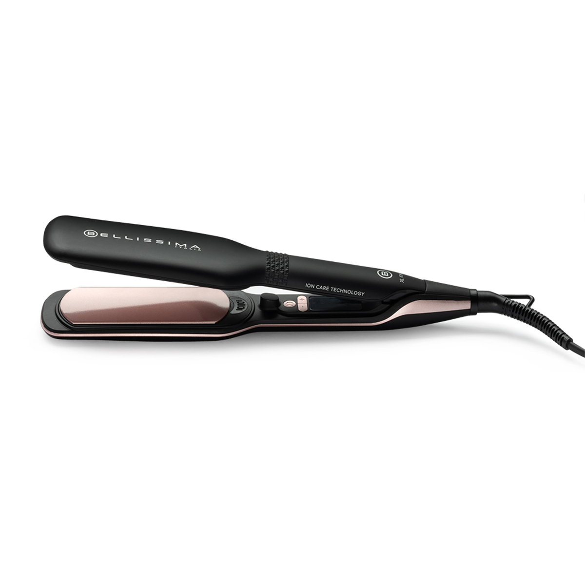 Το Bellissima XL Ion είναι τέλειο για εσάς που έχετε πυκνά ή φριζαρισμένα μαλλιά και θέλετε λαμπερά ίσια μαλλιά χωρίς κόπο. Οι εξαιρετικά φαρδιές πλάκες του (110×45 mm) είναι εύκαμπτες και προσαρμόζονται τέλεια στην τούφα για γρήγορο styling ακόμα και σε δύσκολα στη διαχείριση μαλλιά. Δεν θα σας απασχολεί πλέον το τράβηγμα και το σπάσιμο των μαλλιών σας χάρη στο αποκλειστικό στρογγυλεμένο προφίλ των θερμαινόμενων πλακών. Με τη συνδυασμένη δράση της τεχνολογίας ιόντων και του Ceramic Diamond & Keratin τα μαλλιά σας προστατεύονται: