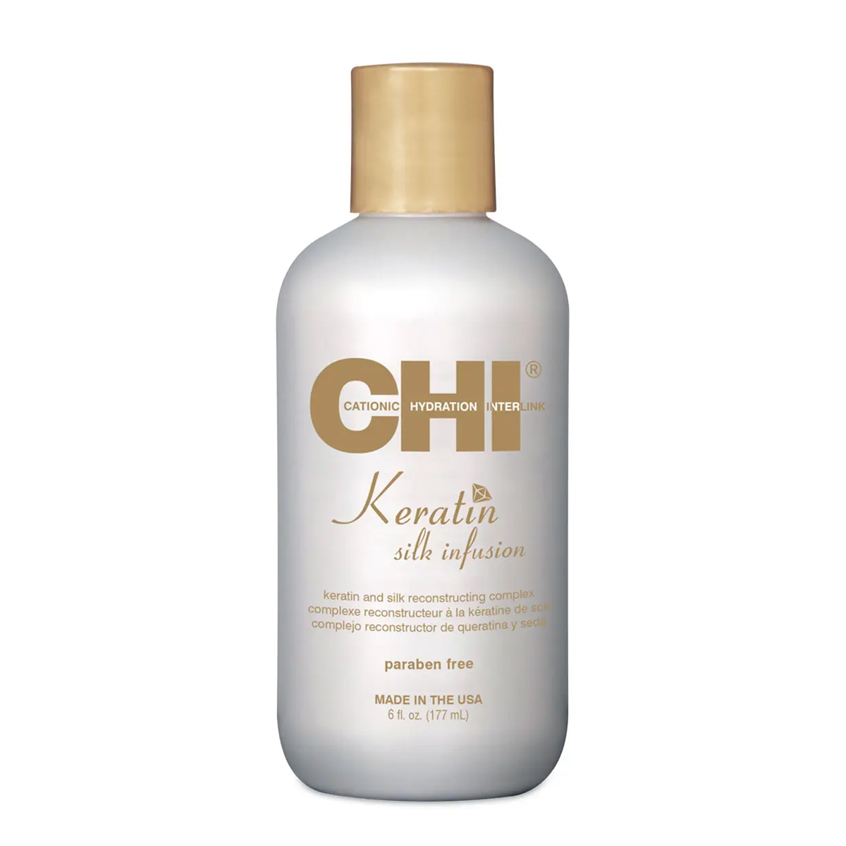 Το CHI Keratin Silk Infusion 177ml, αποτελεί μία θεραπεία αποκατάστασης των κατεστραμμένων μαλλιών, με σύμπλεγμα φυσικής κερατίνης και μεταξιού.