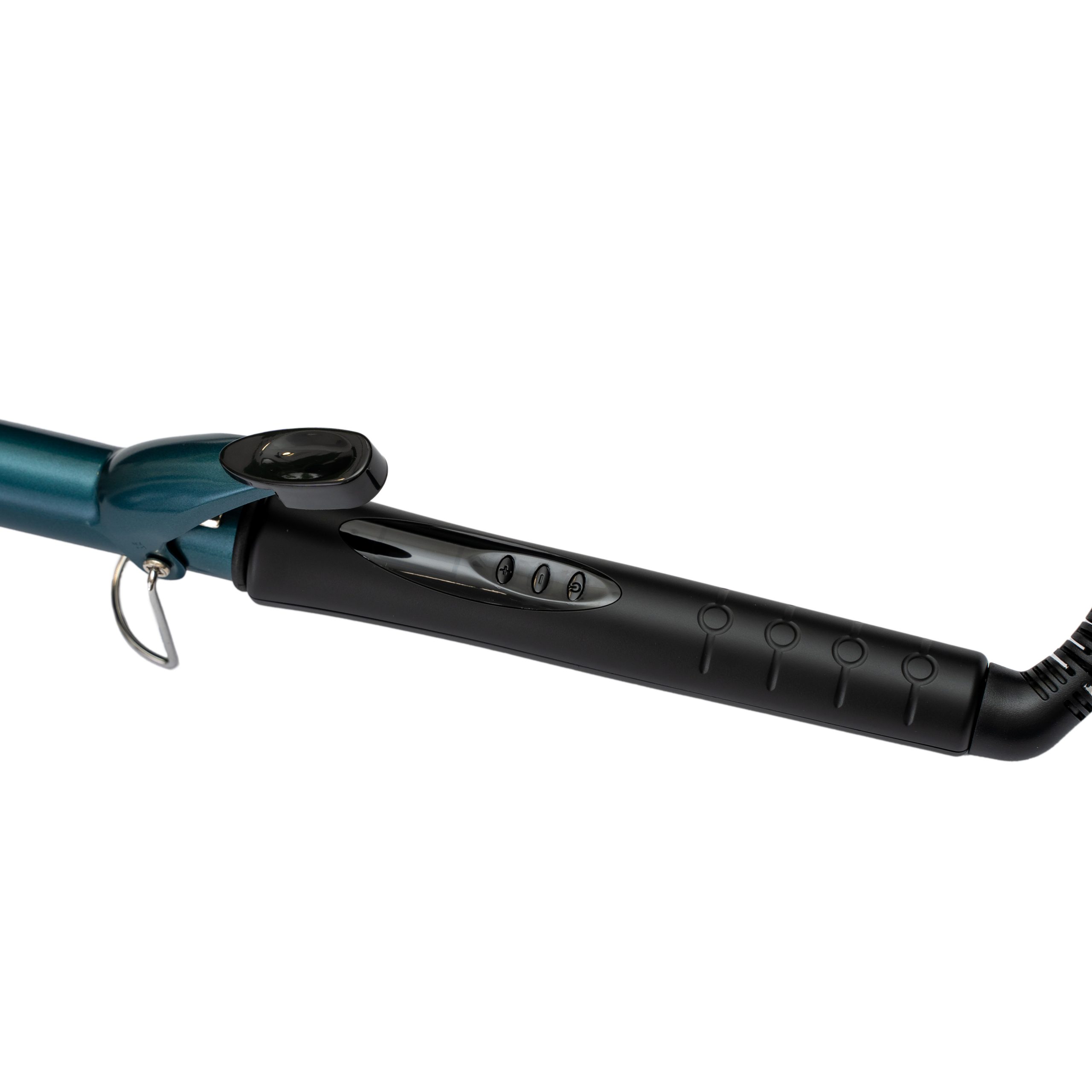 Το ψαλίδι διαθέτει κεραμική επίστρωση με διάμετρο 25mm, κουμπιά ρύθμισης της θερμοκρασίας και λαβή με επένδυση καουτσούκ.