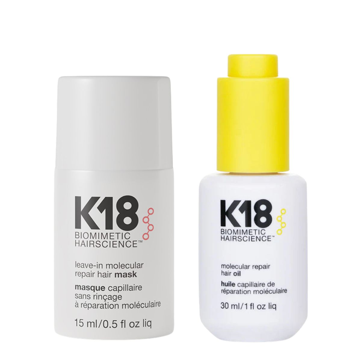 K18 Molecular Repair Set 2 (Leave-in Molecular Repair Hair Mask 15ml, Molecular Repair Hair Oil 30ml)