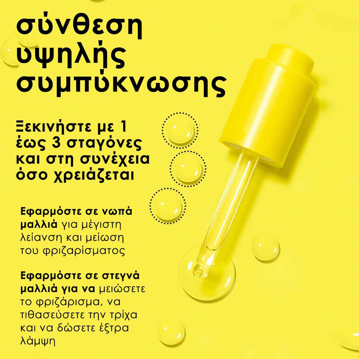 Εφαρμόστε σε νωπά μαλλιά για: μέγιστη λείανση κατά το χτένισμα και μείωση του φριζαρίσματος κατά το στέγνωμα (είτε τα στεγνώσετε με σεσουάρ είτε στεγνώσουν φυσικά).