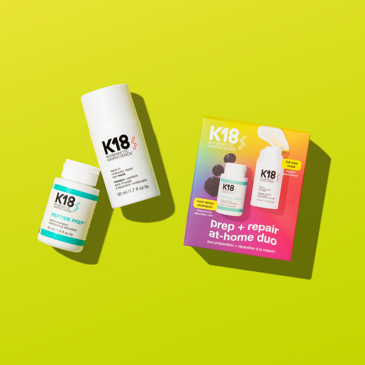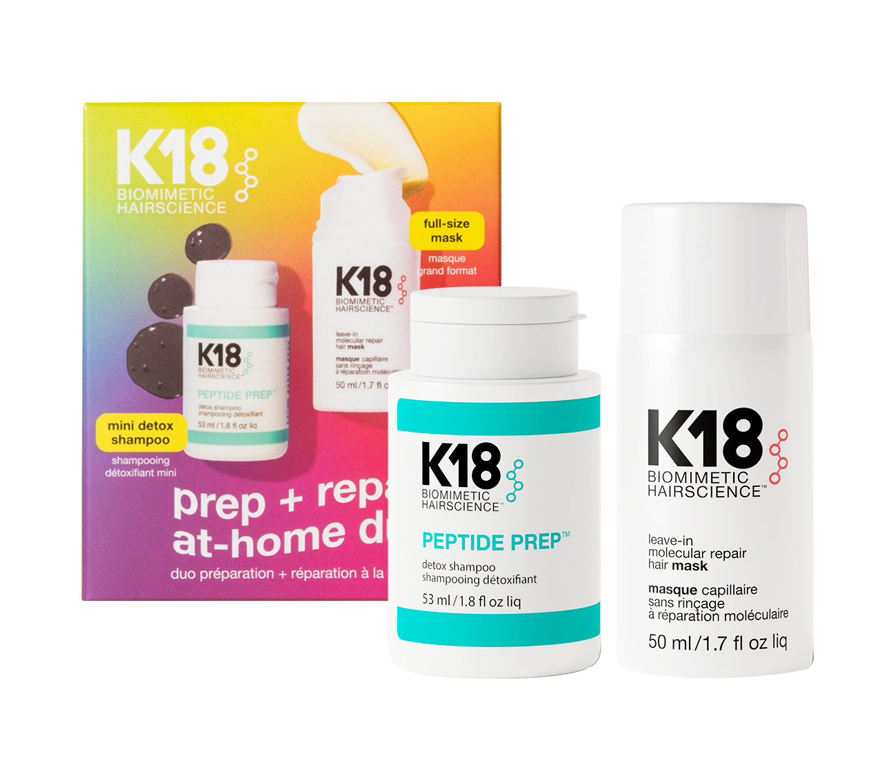 To set περιλαμβάνει την Κ18 Leave-in Μοριακή μάσκα και το detox shampoo.