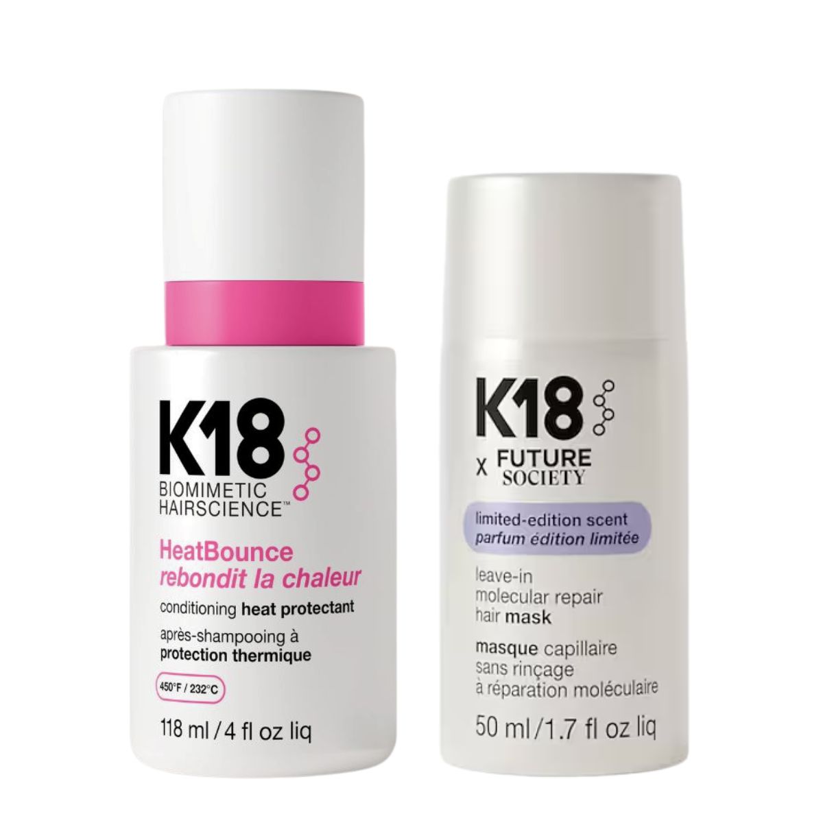K18 Salon Blowout At Home Set (Future Society Limited Edition Leave-in Molecular Repair Hair Mask 50ml, HeatBounce Conditioning Heat Protectant 118ml)
