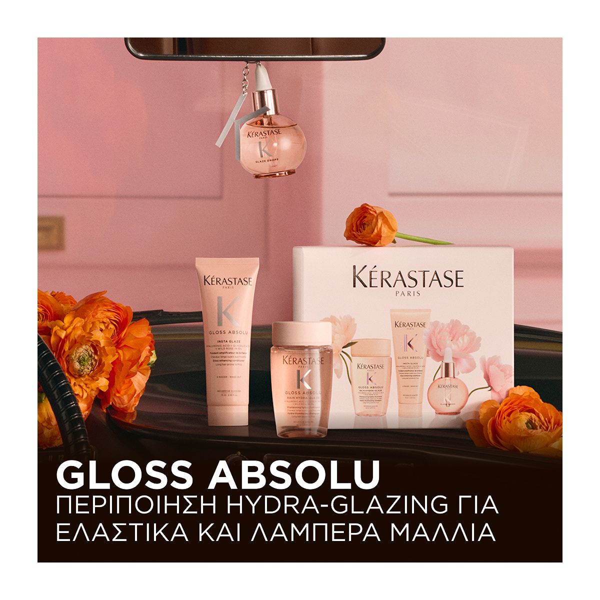 Το απόλυτο δώρο για όσους αναζητούν απόλυτη λάμψη στα μαλλιά. Η τελετουργία Gloss Absolu Hydra-glazing είναι ειδικά σχεδιασμένη για μακριά μαλλιά με τάση φριζαρίσματος. Εμπλουτισμένη με ένα ισχυρό μείγμα Υαλουρονικού Οξέος, Γλυκολικού Οξέος και Έλαιου Άγριου Τριαντάφυλλου, η νέα σειρά Gloss Absolu προσφέρει λάμψη μακράς διαρκείας, εξαιρετική απαλότητα και ανάλαφρη κίνηση – χωρίς ποτέ να βαραίνει τα μαλλιά.
