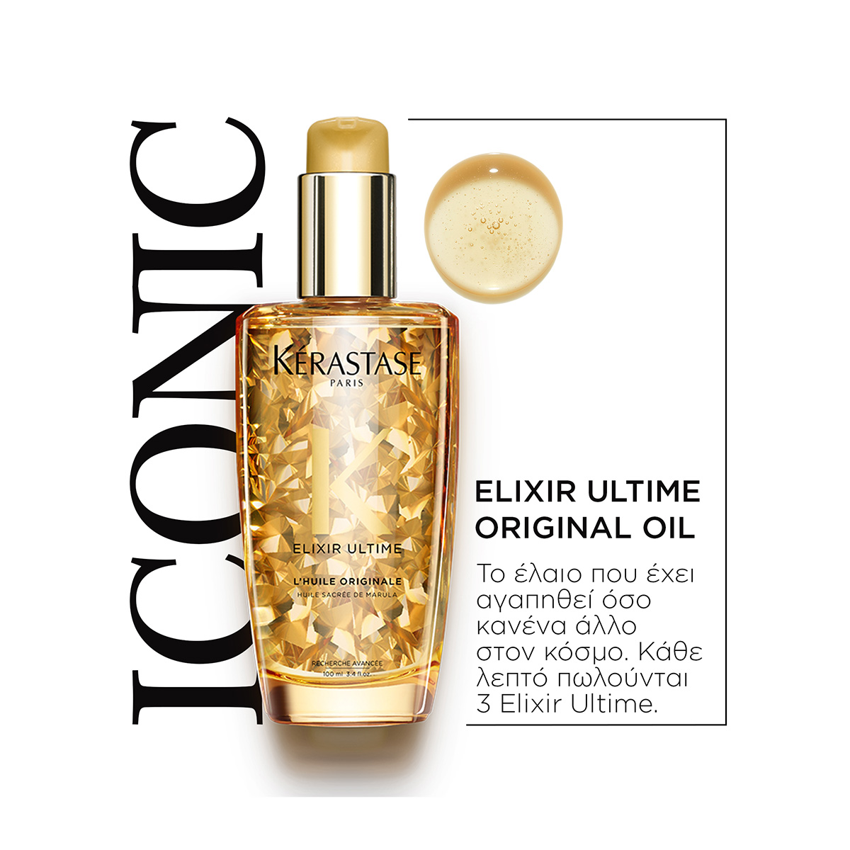 Το Elixir Ultime της Kérastase είναι ένα πολυχρηστικό έλαιο που ομορφαίνει τα μαλλιά και έχει ανάλαφρη σύνθεση. Αυτό το εμβληματικό έλαιο μαλλιών, κυκλοφορεί τώρα σε συσκευασία που ξαναγεμίζει και προσφέρει προηγμένη δράση κατά του φριζαρίσματος σε όλους τους τύπους μαλλιών, αφήνοντας τα μαλλιά προστατευμένα, λαμπερά και απαλά.