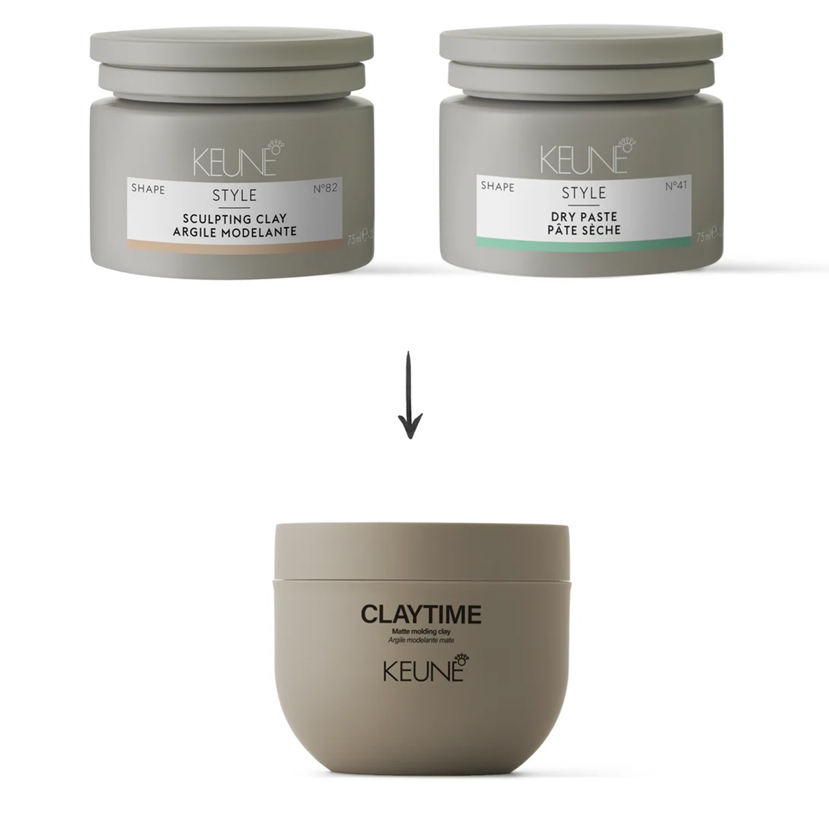 Δημιουργήστε τραχιές, παιχνιδιάρικες υφές με το Keune Style Claytime 100ml, τον ματ πηλό μας! Διαμορφωμένο με Σύμπλεγμα Ξηρού Καθαρισμού, απορροφά την περίσσεια λιπαρότητα από το τριχωτό της κεφαλής, ενώ το άμυλο καλαμποκιού παρέχει ένα ευέλικτο κράτημα για ένα εφικτό look.