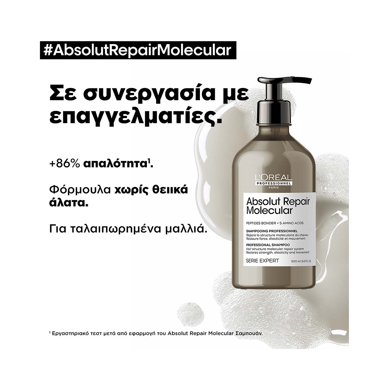 L’Oréal Professionnel Serie Expert Absolut Repair Molecular Σαμπουάν Μοριακής Επανόρθωσης χωρίς θειικά άλατα για ταλαιπωρημένα μαλλιά 500ml