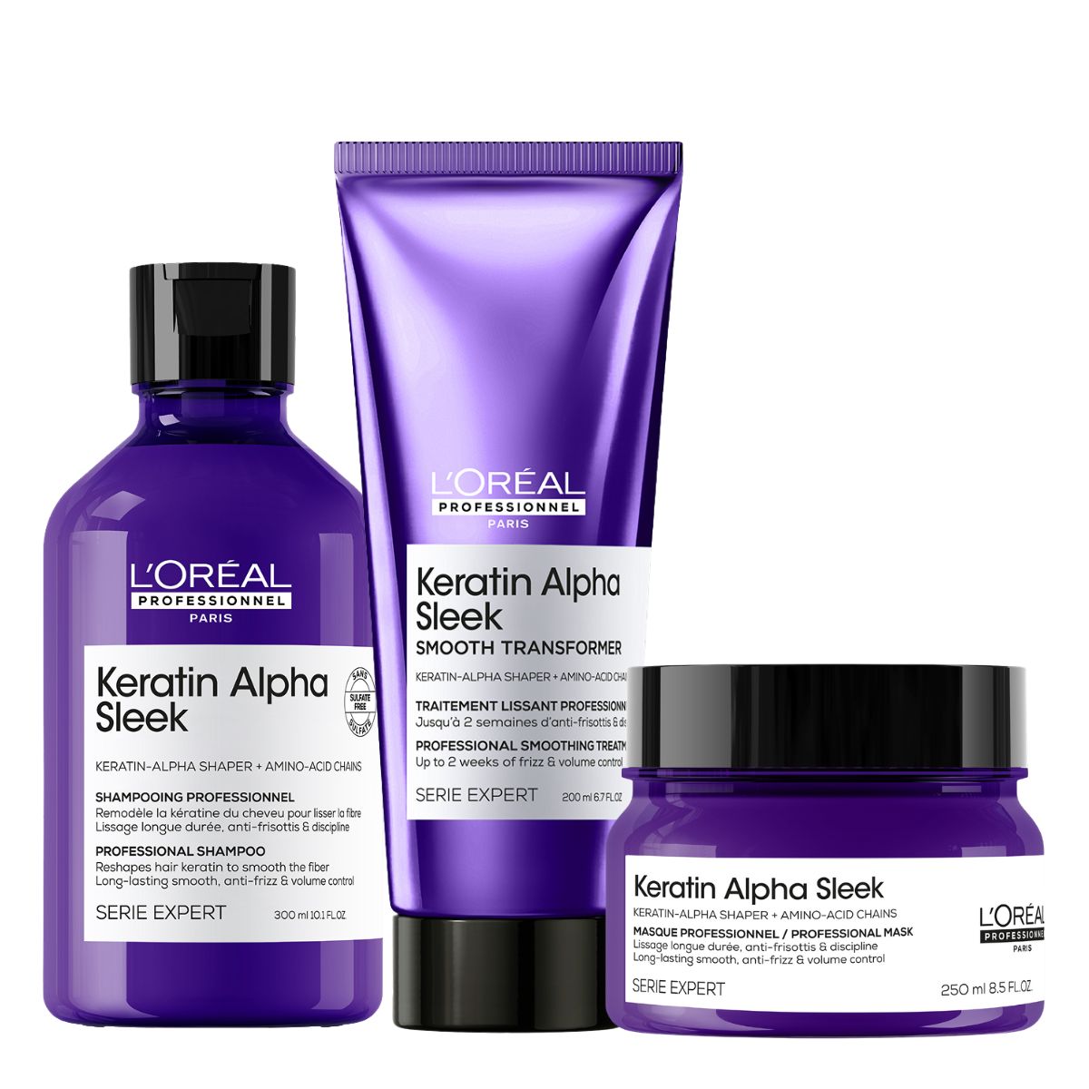 L’Oréal Professionnel Serie Expert Keratin Alpha Sleek Set 2 (Shampoo 300ml, Treatment 200ml & Mask 250ml)