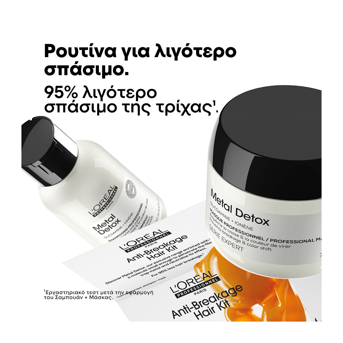 [Hair Kit Κατά Του Σπασίματος] Ανακαλύψτε το Metal Detox, το αποκλειστικό πρωτόκολλο περιποίησης μαλλιών εμπλουτισμένο με γλικοαμίνη, ένα μόριο αρκετά μικρό ώστε να εισχωρήσει στο εσωτερικό της τρίχας και να αποδυναμώσει τα μεταλλικά στοιχεία στα μαλλιά. 95% λιγότερο σπάσιμο της τρίχας*.