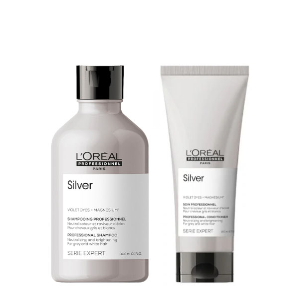 Το L’Oréal Professionnel Serie Expert Silver Set προσφέρει λαμπερά γκρίζα μαλλιά, που επανακτούν τη φυσική τους απαλότητα.