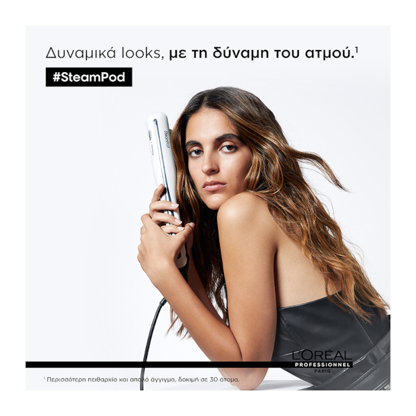 Το επαναστατικό σύστημα ισιώματος SteamPod 3.0 της L’Oréal Professionnel Paris γίνεται πιο αποτελεσματικό, μεταμορφώνοντας τα μαλλιά σας 2x πιο γρήγορα και με περισσότερη ευκολία, με τη δύναμη του ατμού.