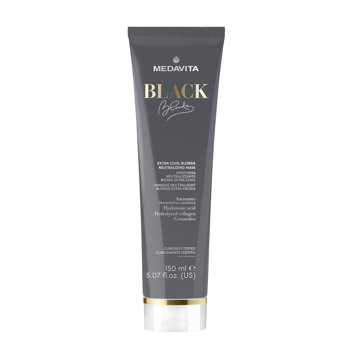 Medavita Extra Cool Silver μαύρη μάσκα toning για ξανθά μαλλιά. Η χρήση της μαύρης μάσκας και του μαύρου σαμπουάν εγγυάται τα μέγιστα χρωματικά και καλλυντικά αποτελέσματα.