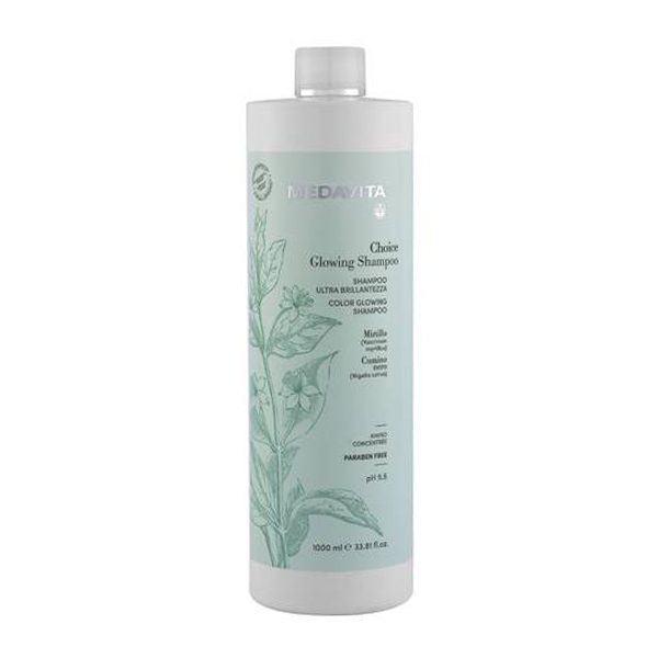 Medavita Choice Color Glow σαμπουάν με ειδική φόρμουλα που εξασφαλίζει έναν ισορροπημένο καθαρισμό, ενώ παράλληλα το αποκλειστικό σύμπλεγμα ελαίων, πλούσιο σε φυσικά αντιοξειδωτικά, δίνει στην ίνα ακαταμάχητη λάμψη και θρέψη, προστατεύοντάς τη, αποκαθιστώντας τη φυσική της προστασία και προλαμβάνοντας την αφυδάτωση.
