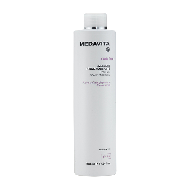Medavita Cutis Pura γαλάκτωμα απολύμανσης του δέρματος. Μία απαλή απολεπιστική δράση που αφαιρεί τα συσσωρευμένα νεκρά κύτταρα και εξαλείφει τα σμηγματογόνα κατάλοιπα. Η βακτηριακή χλωρίδα ομαλοποιείται και το τριχωτό της κεφαλής είναι έτοιμο για όποια θεραπεία θέλετε να ακολουθήσετε. Το μυστικό είναι ο Ιαπωνικός Αστεροειδής Γλυκάνισος με τις απολεπιστικές, τονωτικές και απολυμαντικές του ιδιότητες.