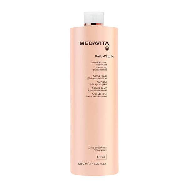 Medavita Huile D’Etoile σαμπουάν για ένα ισορροπημένο καθάρισμα, δίνοντας εξαιρετική λάμψη και θρέψη στην ίνα της τρίχας. Με έλαια Sacha Inchi, Moringa, Tiger Nuts και λιναρόσπορο που προστατεύουν και αναζωογονούν την τρίχα.