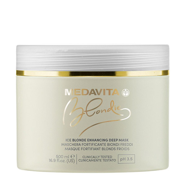 Medavita Ice Bonding μάσκα ενίσχυσης χρώματος για ξανθά μαλλιά. Προστατεύει και ενισχύει τους ψυχρούς τόνους, δίνοντας στη δομή ανανεωμένο σώμα.