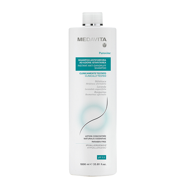 Medavita Puroxin αντιπιτυριδικό σαμπουάν ενισχυμένης απόδοσης, για το τριχωτό και τα μαλλιά που είναι υγιή και προστατευμένα καθόλη τη διάρκεια της ημέρας. Εξαλείφει σε βάθος την ορατή πιτυρίδα και προλαμβάνει την επανεμφάνισή της, χάρη στην συνδυαστική δράση της Πιροκτόνης Ολαμίνης και ενός απολεπιστικού ενζύμου που εξομαλύνει το μικροβιακό περιβάλλον και προλαμβάνει την απολέπιση. Ενισχύει την άμυνα του τριχωτού και προσφέρει άμεση ανακούφιση από τον κνησμό, χάρη στο μοναδικό μείγμα ενεργών συστατικών και αιθέριων ελαίων.