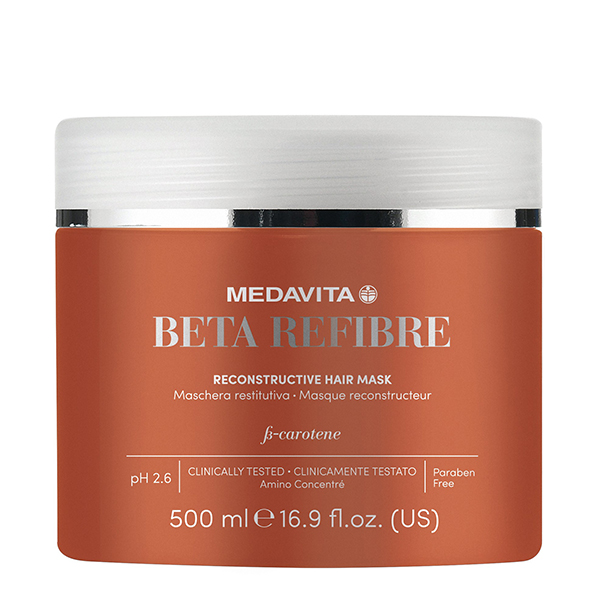 Medavita Refibre Maschera μάσκα τόνωσης. Η μαλακή υφή και η πυκνότητά της επηρεάζουν έντονα την ίνα, καλύπτοντάς την με έναν προστατευτικό μανδύα, που κλείνει κλιμακωτά την ίνα, κάνει τα μαλλιά πιο λαμπερά, συμπαγή και ευκολοχτένιστα. Η β – καροτίνη και το σύμπλεγμα Amino Concentrée ανανεώνουν το στέλεχος της τρίχας, καθιστώντας το πιο ελαστικό, ουσιώδη και ζωτικό.