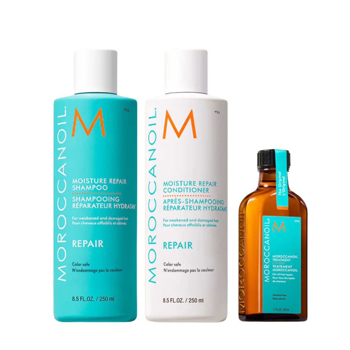 - Moisture Repair Shampoo 250ml: Μια απαλά καθαριστική, ενισχυτική φόρμουλα που επανορθώνει τα ταλαιπωρημένα μαλλιά με πλούσιο σε αντιοξειδωτικά έλαιο argan, πρωτεΐνες κερατίνης και λιπαρά οξέα για να βοηθήσει τα μαλλιά να ανακτήσουν τη φυσική τους ελαστικότητα.