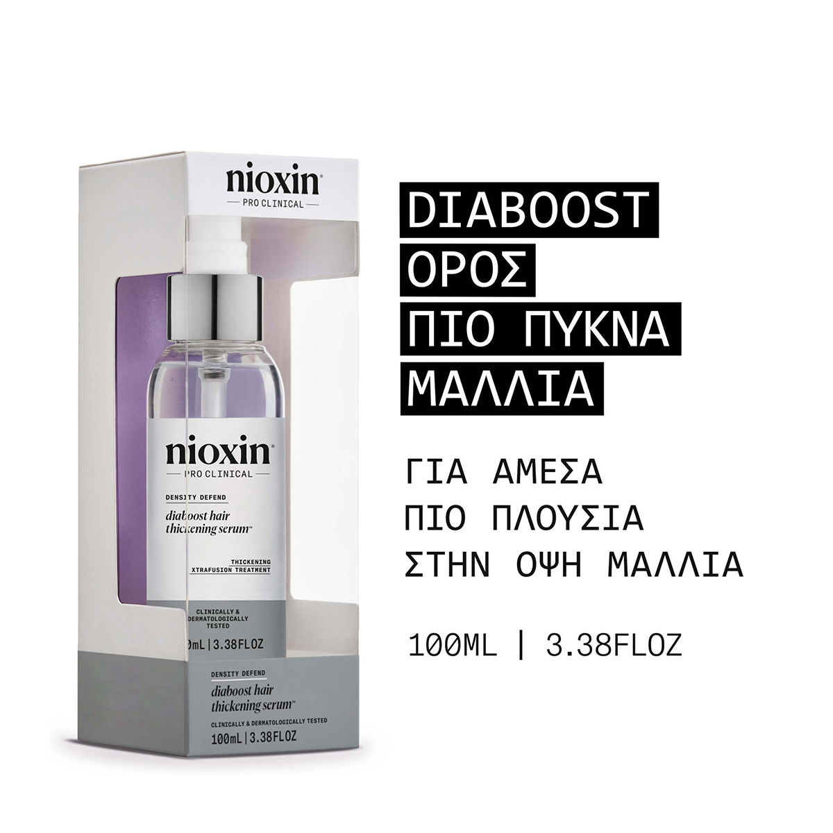 Το Diaboost της Nioxin αποτελεί μία θεραπεία ενίσχυσης της διαμέτρου της τρίχας, που αυξάνει το πάχος της για πιο πυκνά, πιο πλούσια στην όψη μαλλιά.
