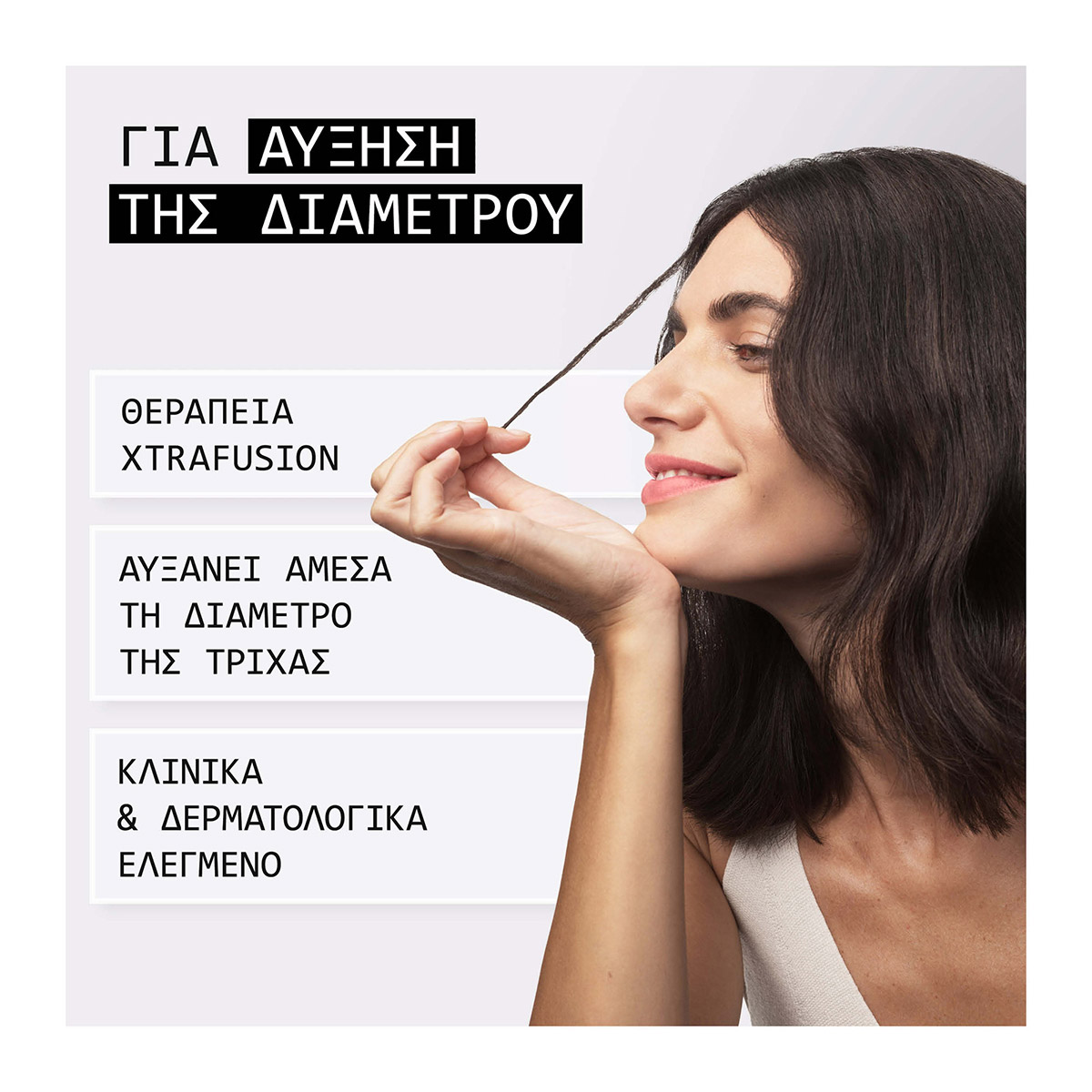• Η τρίχα γίνεται διαχειρίσιμη, πληρέστερη και αισθητά παχύτερη μετά από μία μόνο χρήση