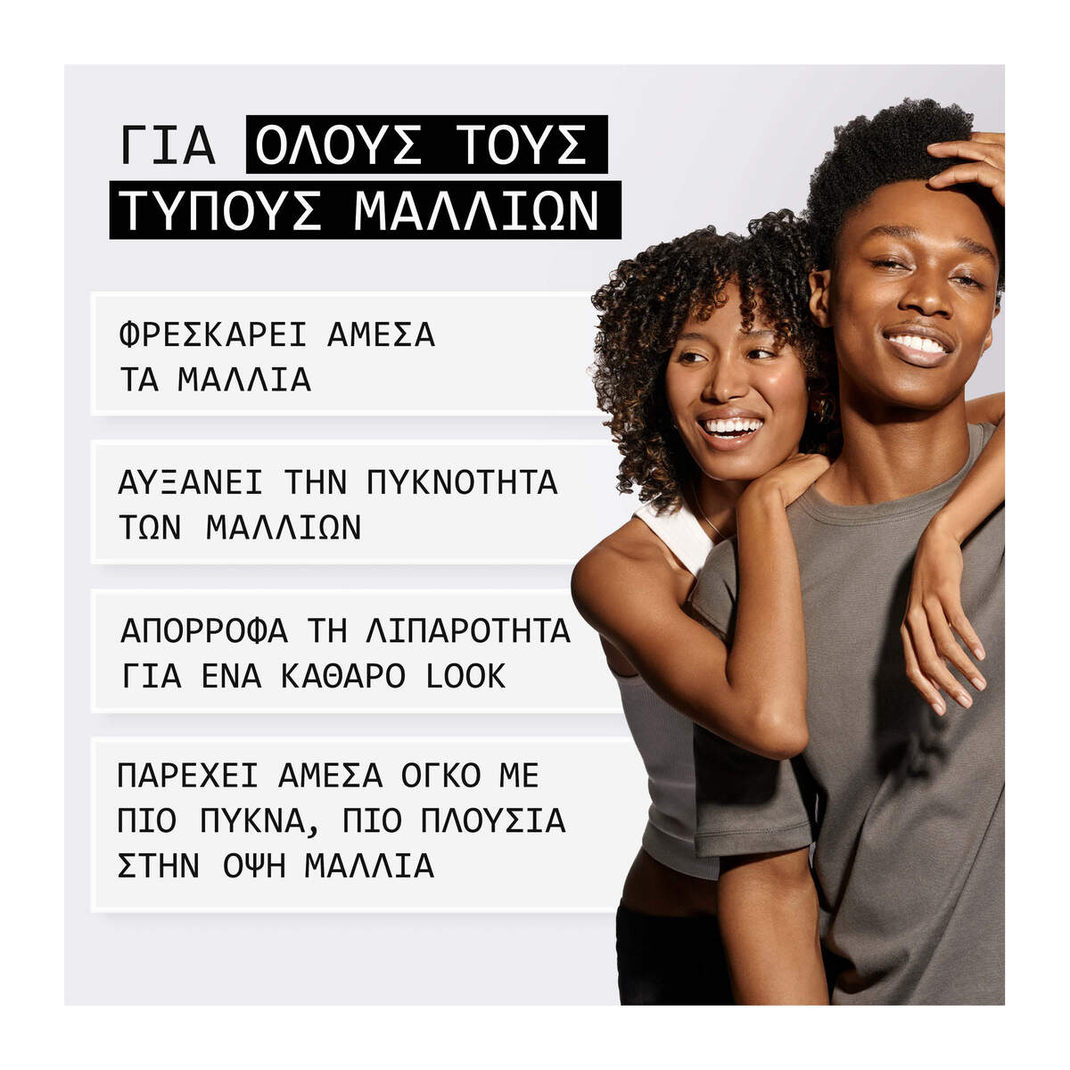• Χαρίζει αποδεδειγμένα έως 2 φορές πιο πλούσια και ανάλαφρα μαλλιά σε λίγα δευτερόλεπτα, απορροφώντας την υπερβολική λιπαρότητα