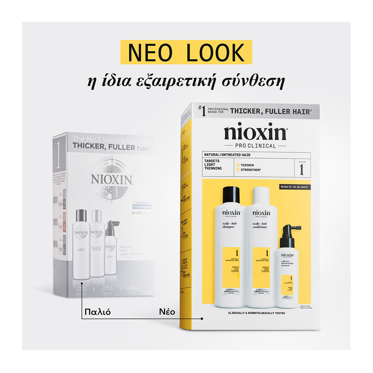 Το Nioxin Σύστημα 1 Loyalty Kit έχει σχεδιαστεί ειδικά για κανονικά έως ελαφρώς αραιωμένα, λεπτά, φυσικά μαλλιά.