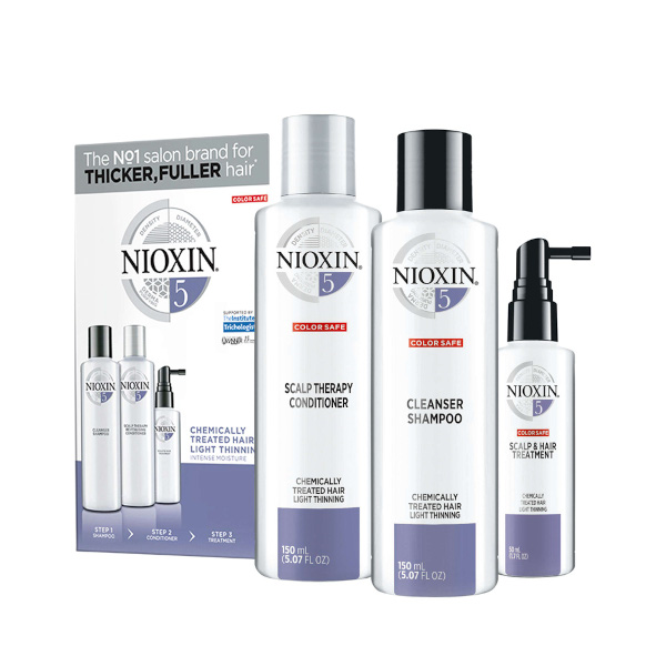 To Nioxin Σύστημα 5 Trial Kit (Σαμπουάν 150ml, Conditioner 150ml, Θεραπεία 50ml) αποτελεί μία ολοκληρωμένη επαγγελματική θεραπεία πύκνωσης για κανονικά προς ελαφρώς αραιωμένα, μέτρια προς χοντρά, φυσικά ή βαμμένα μαλλιά.