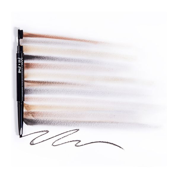 Το νέο διπλό Fill & Fluff Eyebrow Pomade Pencil της Nyx Professional Makeup διαθέτει πτυσσόμενη μύτη σε οβάλ σχήμα με υφή κεριού που χαρίζει χρώμα, καθώς και ένα μίνι βουρτσάκι για σβήσιμο και ομοιόμορφη όψη.