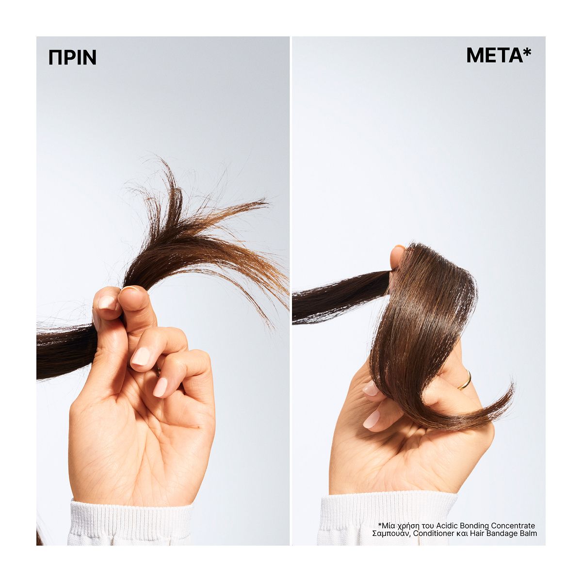 *Ενόργανη αξιολόγηση της ψαλίδας μόνο με το Redken Acidic Bonding Concentrate Hair Bandage Balm σε σύγκριση με πριν από την εφαρμογή.