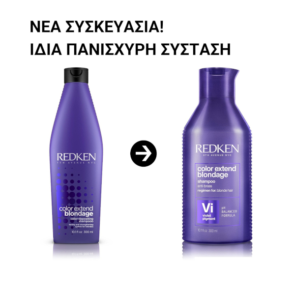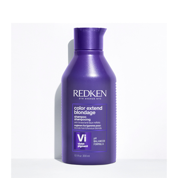 To Color Extend Blondage Shampoo Κατά Των Κίτρινων Τόνων της Redken, περιποιείται και εξουδετερώνει τους ανεπιθύμητους κίτρινους τόνους στα ξανθά μαλλιά.