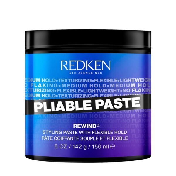 Redken Pliable Paste Flexible Hold, μια εύπλαστη, μέτριας αντοχής πάστα μαλλιών που σας επιτρέπει να δημιουργήσετε ευέλικτα χτενίσματα σε οποιοδήποτε μήκος μαλλιών. Αφήνει τα μαλλιά εύπλαστα και όχι σκληρά. Δεν αφήνει υπολείμματα και δεν συσσωρεύεται. Απομακρύνεται εύκολα με σαμπουάν. Αυτή η πάστα styling είναι αρκετά ελαφριά ώστε να μη βαραίνει τα μαλλιά σας, αλλά αρκετά ισχυρή ώστε να σας επιτρέπει να διαμορφώνετε το χτένισμά σας κατά τη διάρκεια της ημέρας όπως επιθυμείτε.