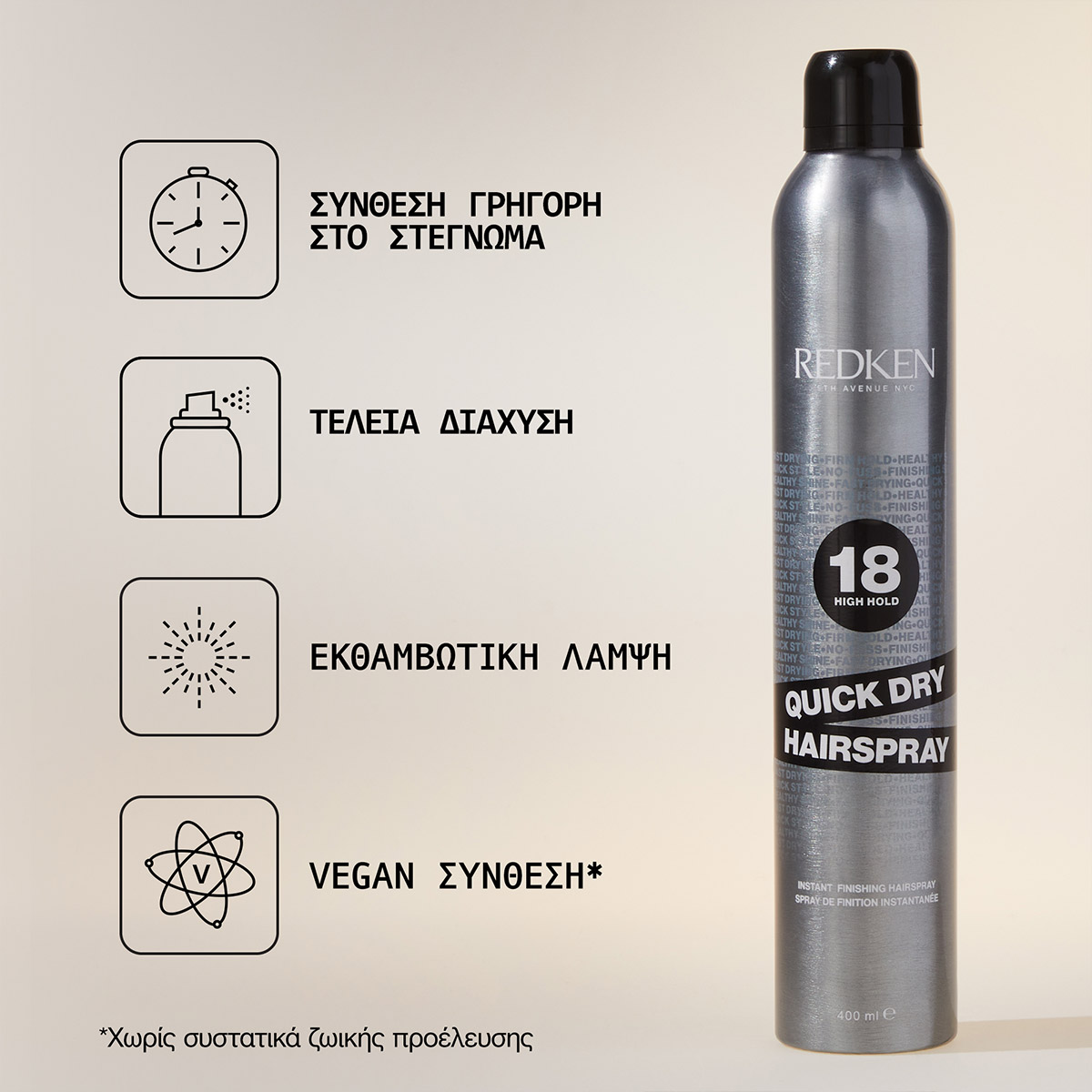 Redken Quick Dry Hairspray Σπρέι Με Προωθητικό Αέριο Για Δυνατό Έλεγχο 400ml
