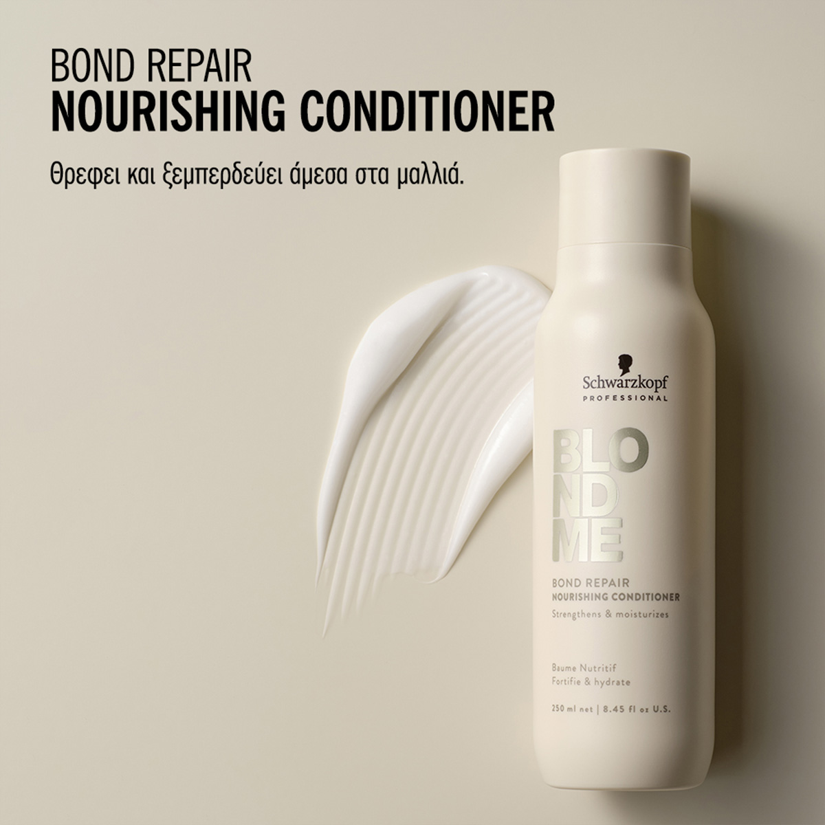 Το BLONDME Bond Repair Nourishing Shampoo χαρίζει θρέψη στα ξανθά μαλλιά, – ένα shampoo που καθαρίζει απαλά τα μαλλιά αφήνοντας μια αίσθηση ενυδάτωσης.