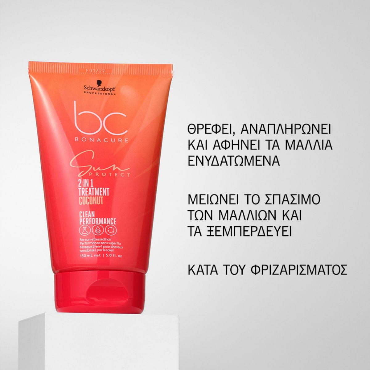 Το Schwarzkopf Professional Bonacure Sun Protect 2-in-1 Treatment είναι μια εντατική θεραπεία σχεδιασμένη να θρέφει, επανορθώνει και προστατεύει τα μαλλιά από τη φθορά που προκαλεί η έκθεση στον ήλιο. Ενυδατώνει βαθιά τα ξηρά, ταλαιπωρημένα μαλλιά, ενώ παράλληλα τα ενδυναμώνει και επαναφέρει τη ζωντάνια και τη λάμψη τους.