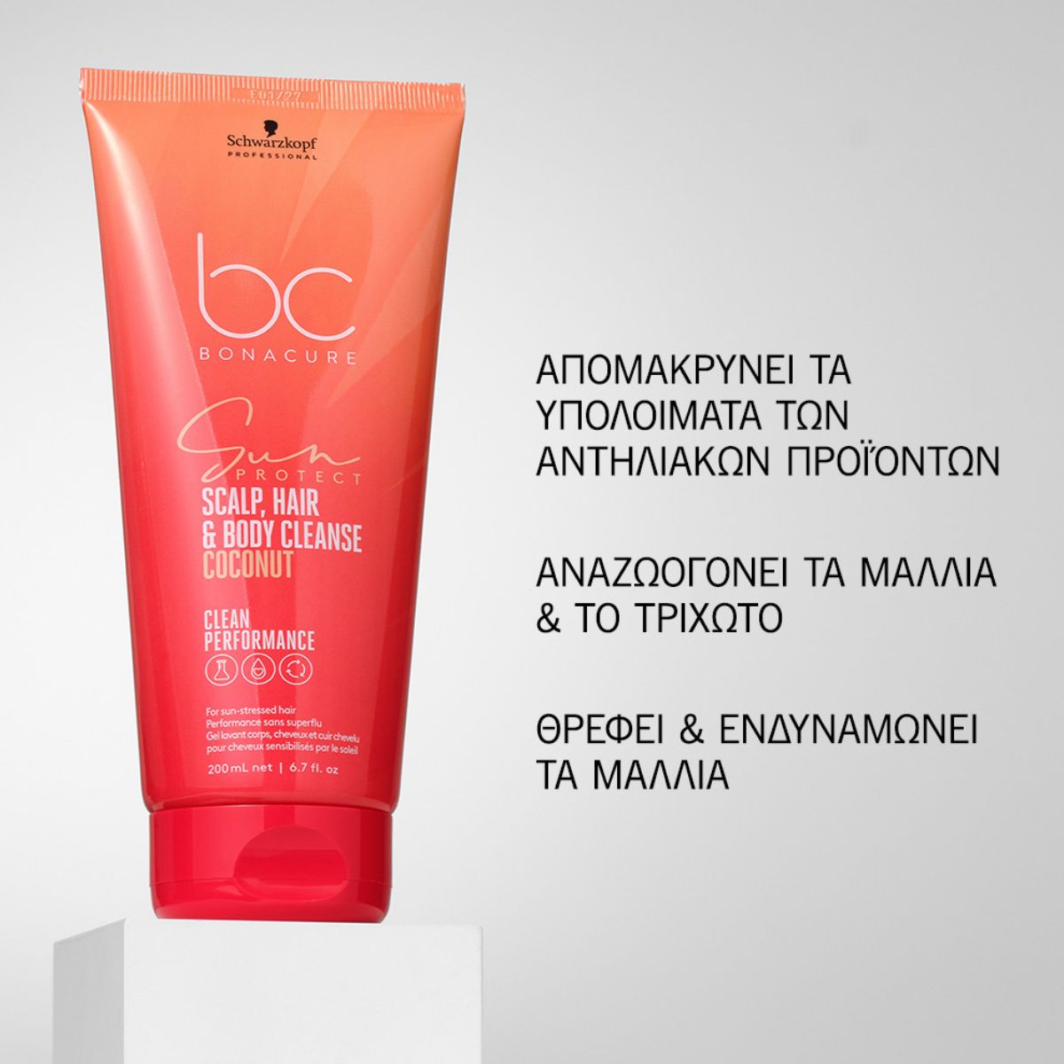 Το Schwarzkopf Professional Bonacure Sun Protect 3-in-1 Scalp, Hair & Body Cleanse 200ml αποτελεί ένα 3 σε 1 προϊόν καθαρισμού απομακρύνει τα κατάλοιπα από αντηλιακά προϊόντα σε μαλλιά και σώμα.