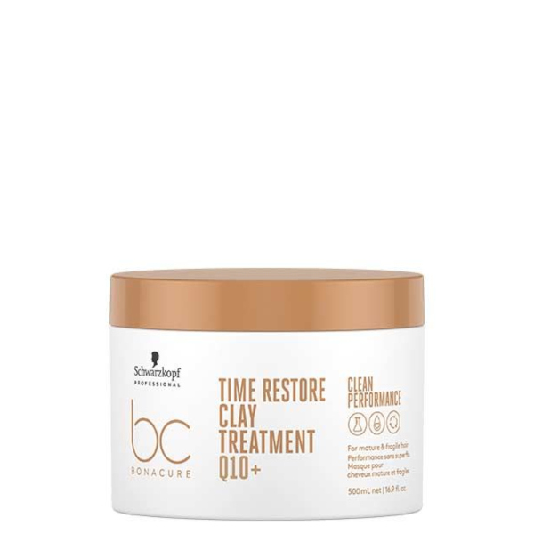 Η Schwarzkopf Professional Bonacure Time Restore Clay Treatment 500ml αποτελεί θεραπεία ενδυνάμωσης με αντιγηραντική δράση, με Q10+ για εύθραυστα και ώριμα μαλλιά.