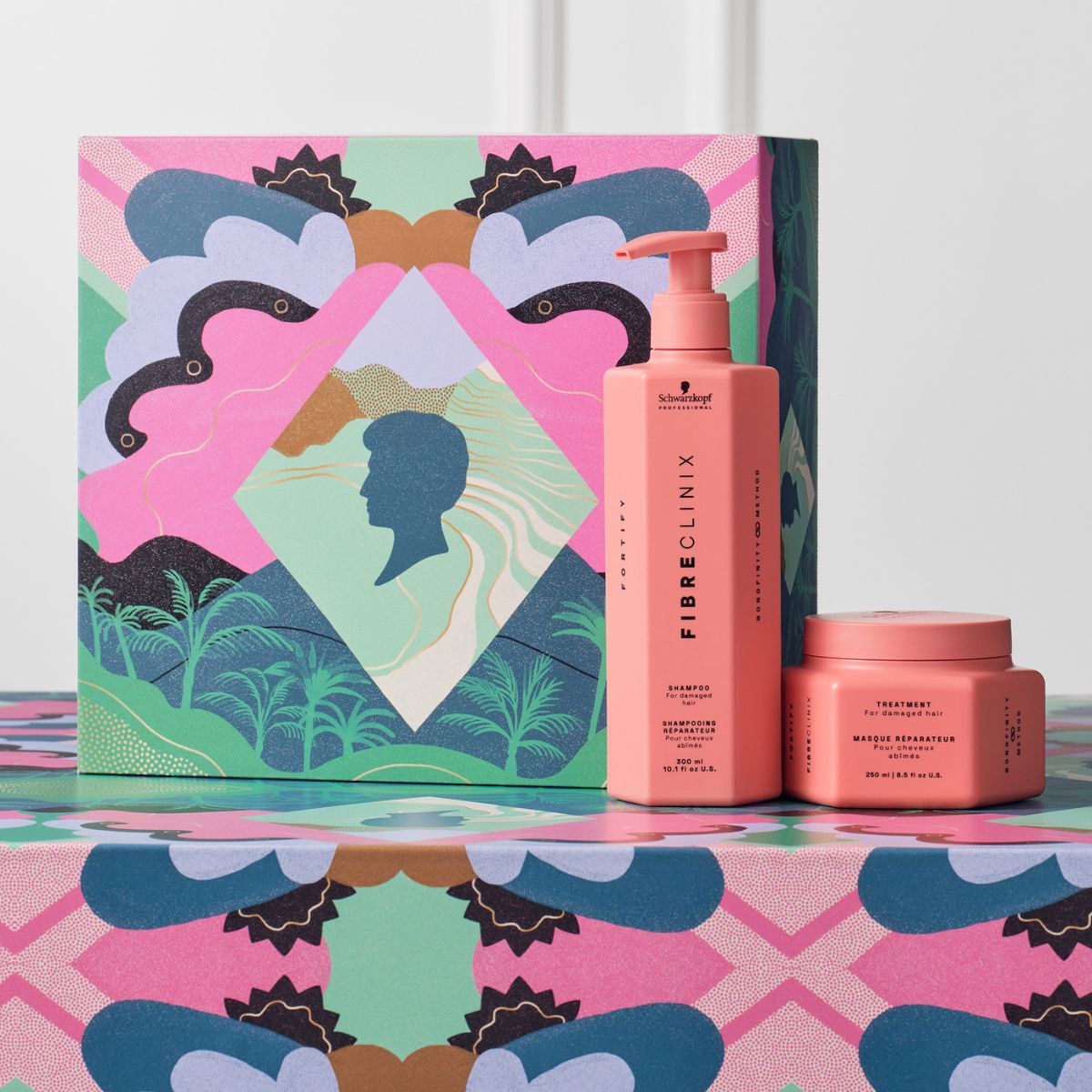 Επανορθώστε, ενδυναμώστε και αναζωογονήστε τις ίνες της τρίχας με αυτό το Fibre Clinix Fortify Gift Box – ένα σετ δώρου που περιλαμβάνει το Σαμπουάν Fortify 300ml & το Fortify Treatment 250ml. Η σειρά Fortify θρέφει εντατικά, ενώ προσφέρει ενδυνάμωση και λάμψη στα μαλλιά. Συμπεριλαμβάνεται μέσα σε ένα μοναδικά σχεδιασμένο Gift Box από την καλλιτέχνη Gina Rosas, η οποία εμπνεύστηκε από την πρωτοβουλία SHAPING FUTURES της Schwarzkopf Professional.