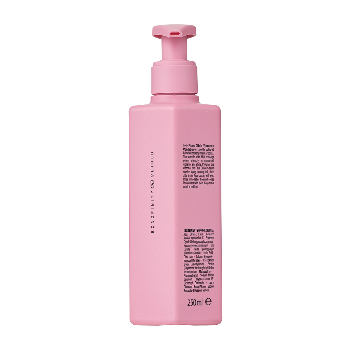 Το Fibre Clinix Vibrancy Conditioner με ενσωματωμένη Τεχνολογία BONDXTENT ενδυναμώνει τα μαλλιά και δημιουργεί δεσμούς στο εσωτερικό μέρος της ίνας της τρίχας. Είναι ένα conditioner επανόρθωσης που λειαίνει και προστατεύει το χρώμα όλων των τύπων βαμμένων μαλλιών. Η σύνθεση με Α-Υδροξυοξέα (AHA), βελτιώνει το ξεμπέρδεμα των μαλλιών και τα κάνει ευκολοχτένιστα ενώ προστατεύει και διατηρεί τη λάμψη των μαλλιών.