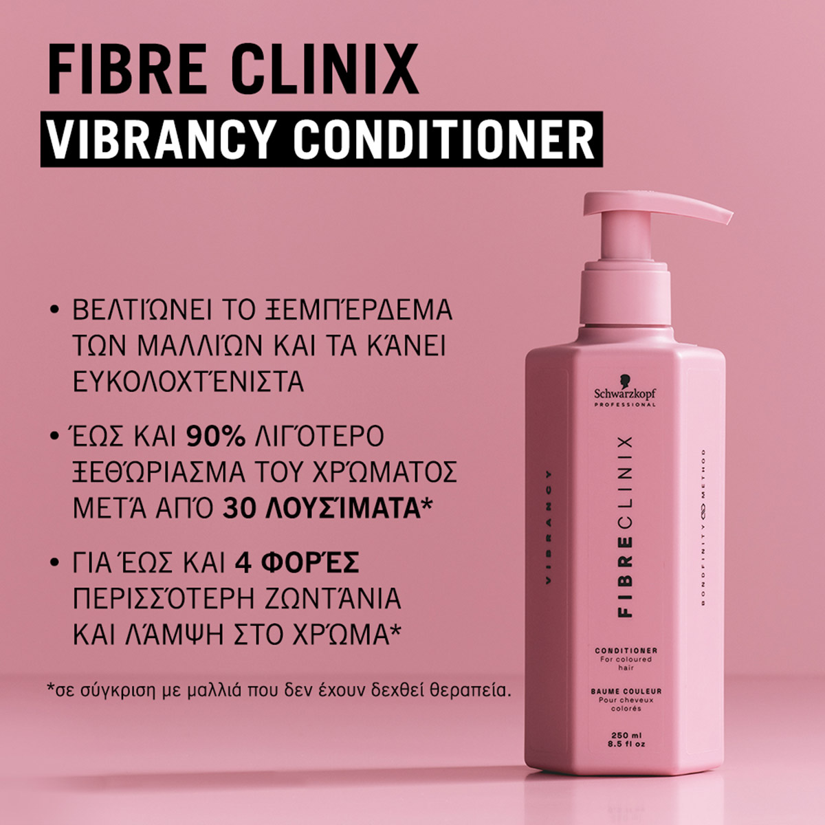 Το Fibre Clinix Vibrancy Conditioner είναι ένα conditioner επανόρθωσης που προστατεύει το χρώμα των βαμμένων μαλλιών.