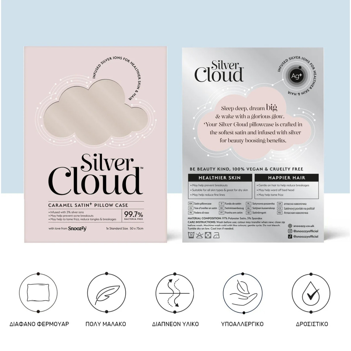 Ξύπνα κάθε πρωί με λάμψη και υγιή δέρμα χάρη στη μαξιλαροθήκη Silver Cloud. Κατασκευασμένη από απαλό σατέν και εμπλουτισμένη με φυσικά ιόντα αργύρου, σε αποχρώσεις του κάραμελ .