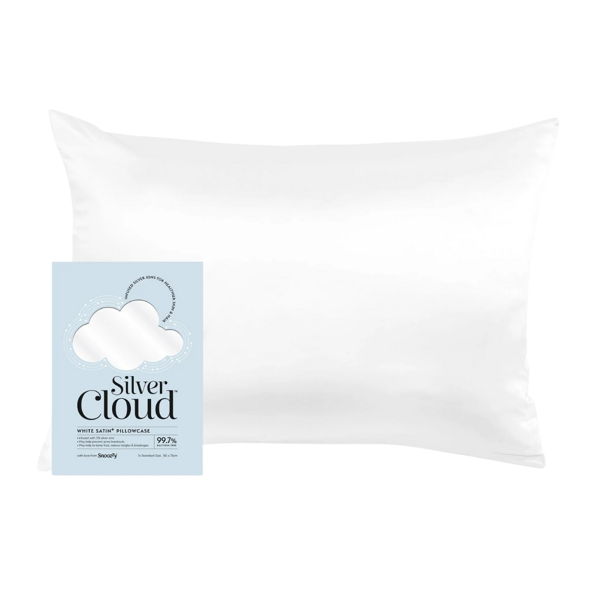 Ξύπνα κάθε πρωί με λάμψη και υγιή δέρμα χάρη στη μαξιλαροθήκη Silver Cloud. Κατασκευασμένη από απαλό σατέν και εμπλουτισμένη με φυσικά ιόντα αργύρου, σε λευκό χρώμα .